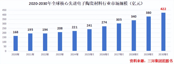2024年,全球核心先进电子陶瓷材料的市场规模约为221亿元,预计将在2030年达到422亿元,足足提高了一倍。而三环集团目前已具备先发优势,未来有望继续吃下市场蛋糕。