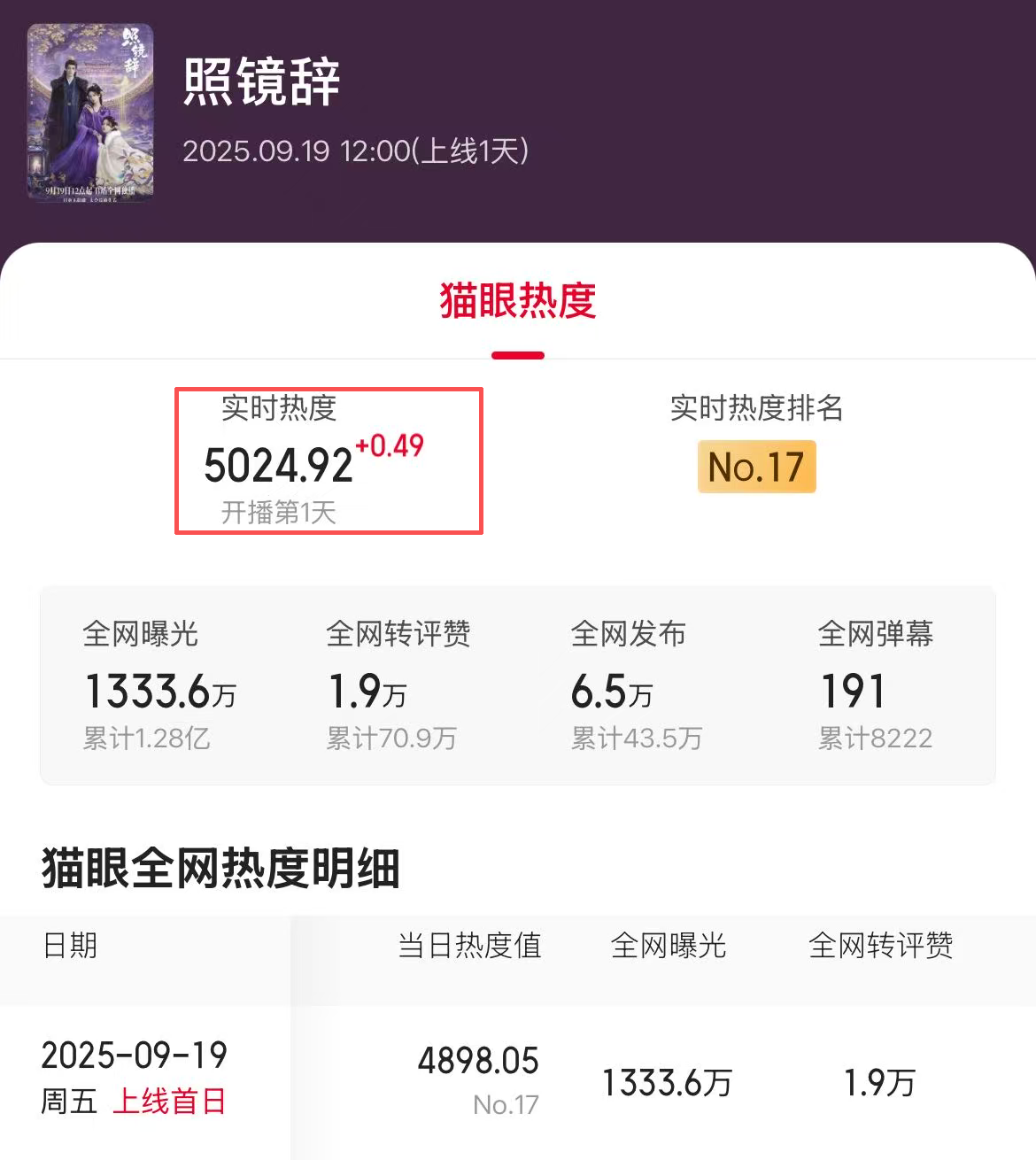 古装重生剧《照镜辞》于B站播出,仅播2小时,实时热度破5000,观众反馈一片好评,口碑相当能“打”。